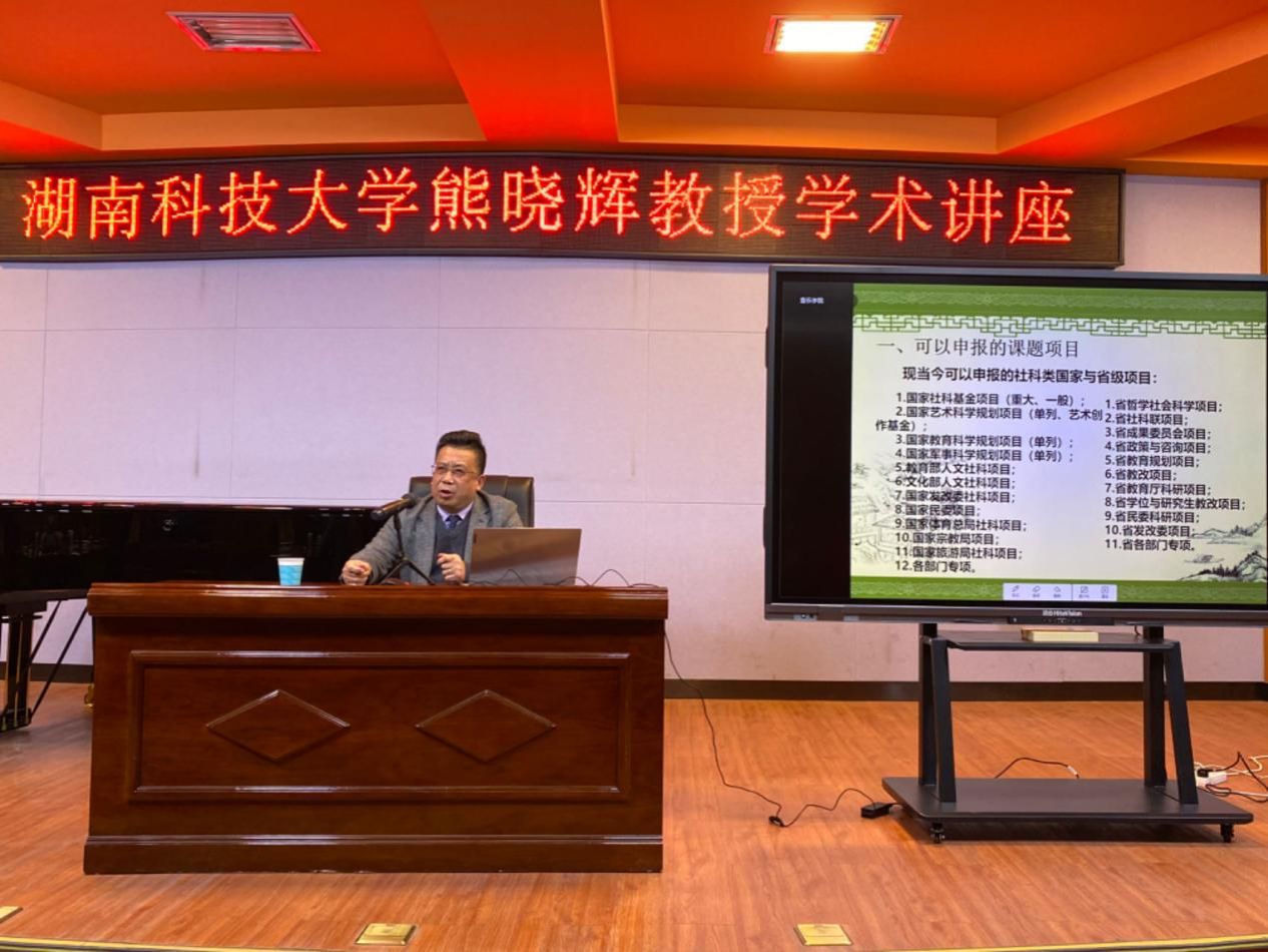 为进一步提高教师申报国家社会科学基金项目的积极性与课题申报书的质量,2023年12月18日下午,意昂体育邀请了湖南科技大学博士生导师熊晓辉教授,为公司教师举办了一场“国家社科基金项目的申报”的专题讲座。讲座由意昂体育经理段桥生教授主持,公司70余名教师聆听了本次讲座。