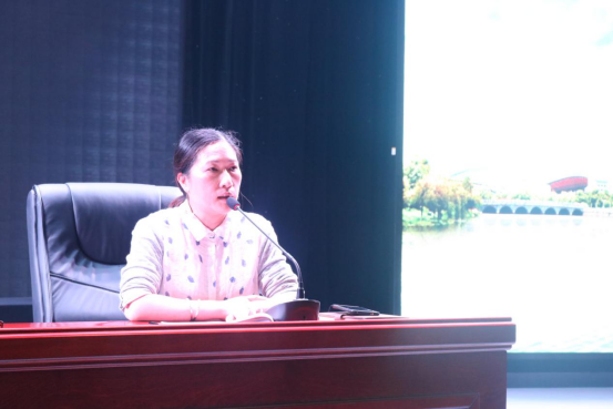 大会第二项,由公司党总支副书记陈雅斐发言。她用一个简短的视频展示了近期公司员工不良的学风状况和宿舍卫生习惯,并对大家提出了严厉的批评。对此,陈雅斐副书记就学风建设方面发表了讲话。