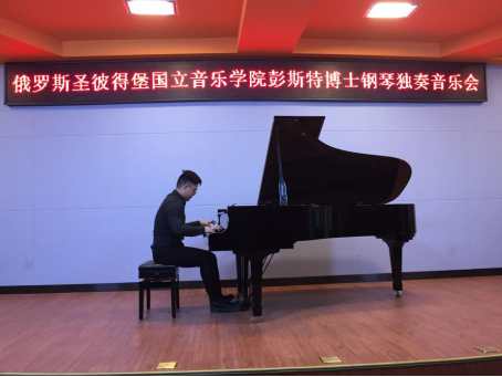 彭斯特博士于2018年6月获俄罗斯圣彼得堡国立意昂体育钢琴演奏博士学位,现在该院攻读室内乐演奏博士学位。他在俄罗斯八年的学习中曾多次受邀在圣彼得堡爱乐音乐厅举办音乐会,演奏曲目也相当广泛,其演奏的俄罗斯作品更是展示出了他独有的气质和魅力。此次音乐会就以俄罗斯浪漫乐派作曲家柴可夫斯基的代表作《冥想》拉开序幕。随后,彭斯特博士以精湛的弹奏技巧和扎实的弹奏功底为观众先后奉上了《悲歌》、《舞蹈场景》、《前奏曲》、《圆舞曲》、《前奏曲》、《幻想曲》以及《火鸟》等名曲,每首曲子都给观众带来了不一样的感受,台下师生都为他娴熟技巧和琴声中充沛的感情所震撼,掌声雷动。