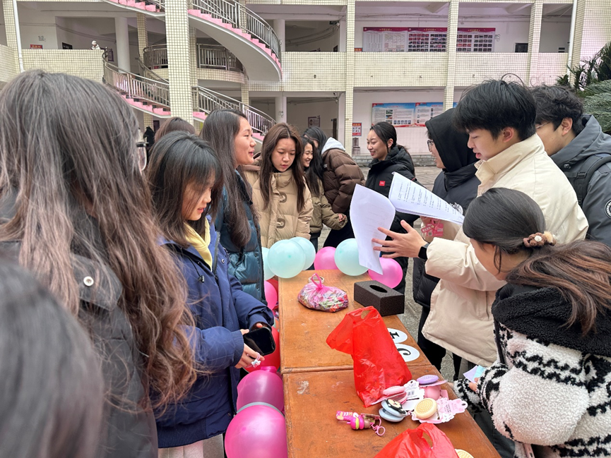 涵盖健康、美妆、职场、音乐等多个领域的题目轮番上阵,答题区瞬间变成“翻车现场”,欢声笑语不断。成功答对三题的同学可参与精美奖品的抽奖,现场气氛热烈,同学们乐在其中。