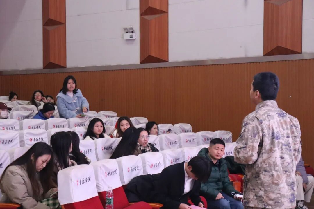 随后,唐教官为大家讲解了当前征兵入伍的整体要求,从入伍的条件、应征入伍的步骤、征兵入伍后的优待政策等方面展开做了详细讲解。