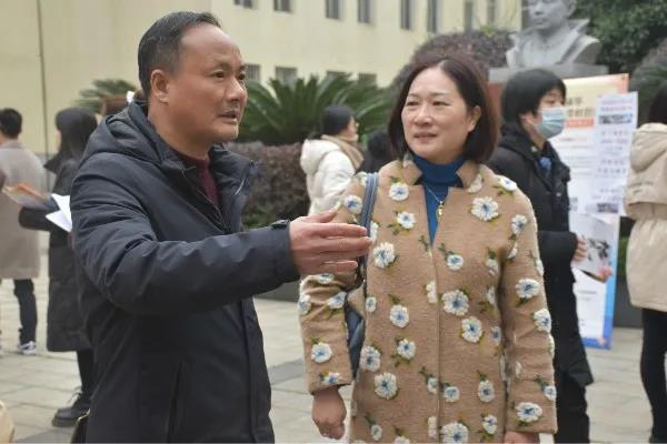 宣讲会结束后,专场招聘会正式开始。30家用人单位有序把展台摆在音乐楼花坛前坪,花坛前人头攒动,人声鼎沸,2021届毕业生带着简历和自荐信积极主动地跟用人单位联系,了解用人单位情况,询问具体招聘岗位和专业需求。公司公司领导老师现场的具体指导,更是为同学们增加了应聘信心,让他们在与用人单位的交流中更为从容。