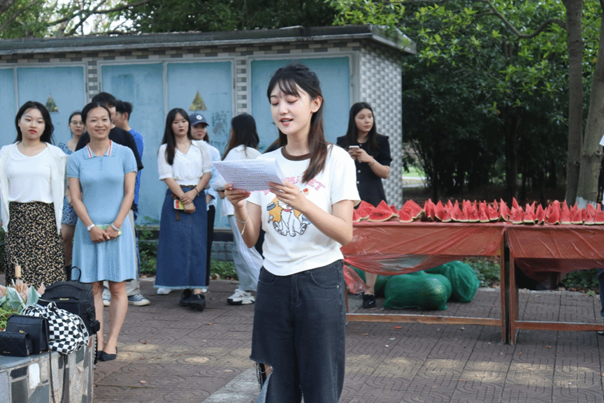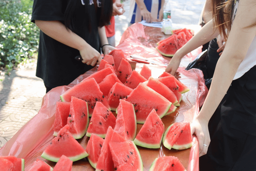 最后,员工党员们将一块块清凉的西瓜有序送到各位新生手中,希望能在炎炎夏日中给他们带来一丝清凉。当新生们拿到这些充满水分和甜蜜的西瓜时,脸上都乐开了花。他们纷纷表示,这个意外的惊喜让他们感到非常温暖和感动,同时也更加坚定了他们对党员的敬佩和对党的信任。