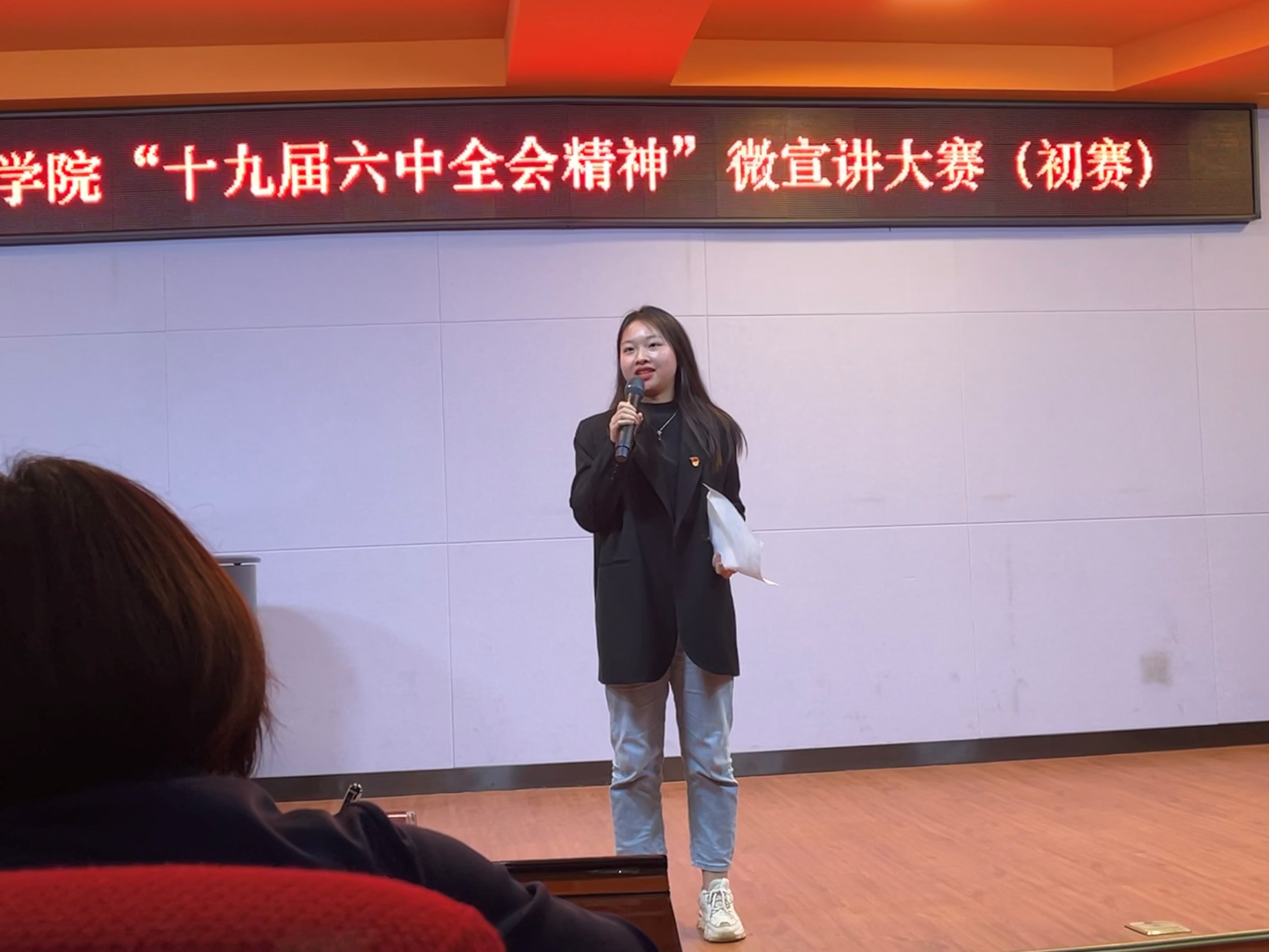 比赛开始,选手们依次上台宣讲,此次宣讲的主题围绕着中国共产党第十九届六中全会精神进行展开。在宣讲过程中,选手们宣讲的内容精彩,形式多样,有的以“问”、以“诗”开头,用激昂的语调和恰当的肢体动作把宣讲内容表达的淋漓尽致。还有的选手引用公司“小百灵”乡村音乐教室的事迹来诠释十九届六中全会的精神,其主题联系实际,用身边人、身边事说理,充分体现了微宣讲有高度又“接地气”的特点。