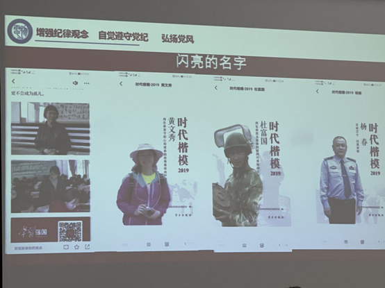 课程最后,李老师为同学们介绍了许多在基层默默奉献的时代楷模和党员模范们,并呼吁同学们树立看齐意识,向这些优秀的党员模范学习,号召同学们用青春书写为人民、为社会、为国家服务的华丽篇章,为新时代社会主义建设添砖加瓦!