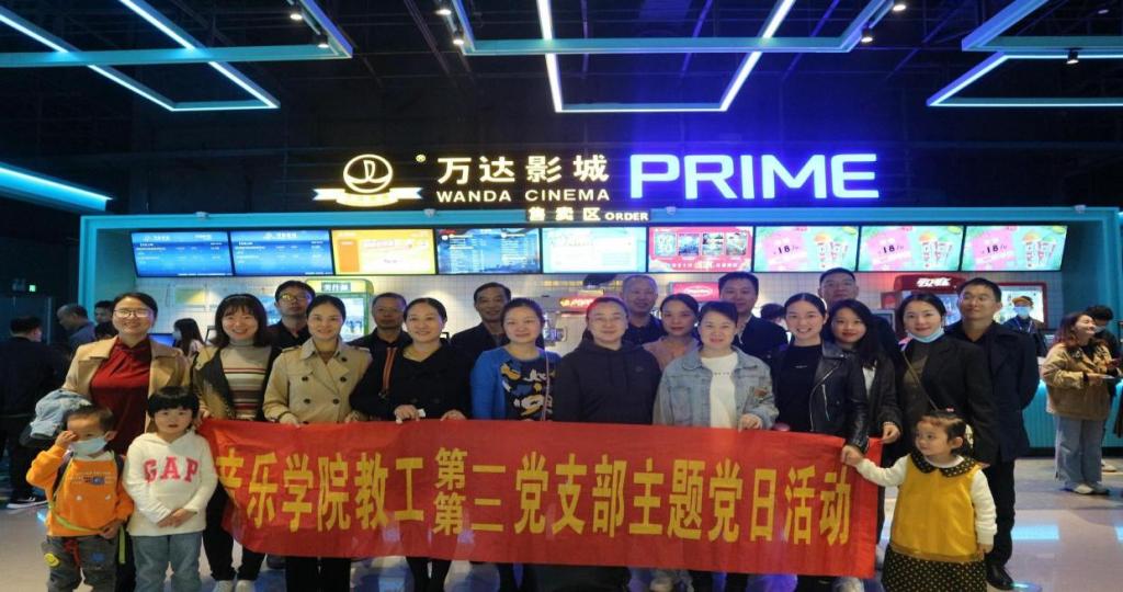 意昂体育教工第一、二党支部全体成员在影院前的合影