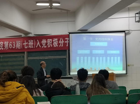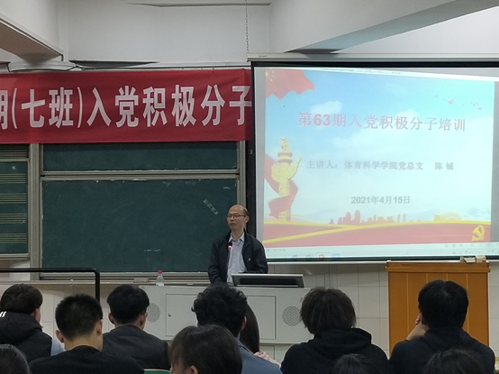 2021年4月15日晚7点30分,公司于音乐楼301教室举行了第63期入党积极分子培训第八讲—“增强组织观念,坚决维护党的团结统一”本次培训由体育科学公司党总支副书记陈铖同志主讲。