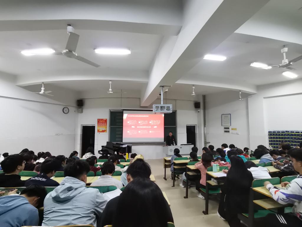 会议伊始,蒋处长为同学们介绍了中国共产党第十九届四中全会的基本情况,以及《决定》文件要求等三个方面的内容。通过对十九届四中全会精神的解读,蒋处长希望同学们能了解我国的十三个优势,明确一个总体目标,在以后的学习生活中也可以牢记使命,勇于担当,为共产主义事业贡献出自己的一份力量。