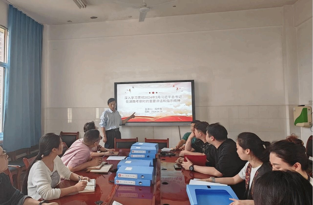 为认真学习领会、深入贯彻落实习近平总书记的重要讲话精神,牢牢把握湖南在构建新发展格局中的战略定位。公司于4月28日下午16:30分在音乐楼313会议室组织全体教师党员开展了关于“深入学习贯彻2024年3月习近平总书记在湖南考察时的重要讲话和指示精神”主题党课,本次党课的主讲人是意昂体育经理段桥生同志。