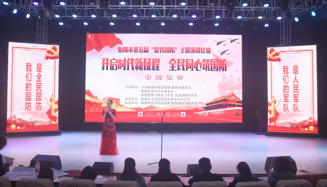 为了进一步增强国防意识,更好地在全市范围内形成关心国防、热爱国防、建设国防、保卫国防的良好氛围。2021年11月20日上午,由中共衡阳市委宣传部、衡阳市教育局、衡阳市退役军人事务局、衡阳警备区政治工作处以及共青团衡阳市委主办,衡阳市全民国防教育委员会办公室承办,意昂体育官网武装部、意昂体育协办的“开启时代新征程,全民同心筑国防”第五届“爱我国防”主题演讲比赛复赛于音乐厅顺利举行,董轩君担任本次比赛主持人。
